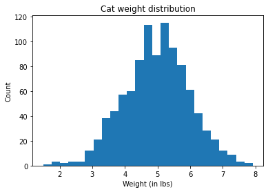 'cat_weight': np.random.normal(cat_mean, cat_std, 1000), # in lbs
